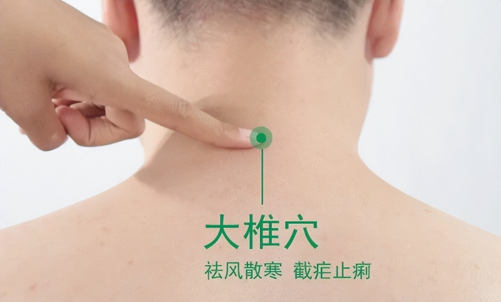 大椎穴——低头时脖子后面最突出的骨头下方就是。感觉发冷、怕风时,用手掌快速搓热这个部位,会立刻感觉一股暖流遍布全身,特别舒服。