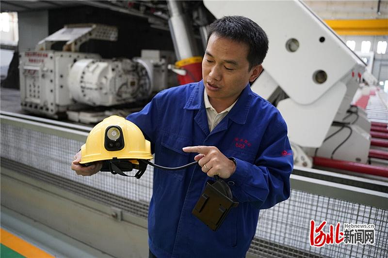 11月5日,中煤张家口煤矿机械有限责任公司所属恒洋电器有限公司工作人员介绍智能安全帽产品。河北日报记者 魏 雨摄